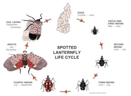 The Spotted Lantern Fly Problem here on Long Island is ongoing and increasing by the year. This is because the Spotted Lanternfly is a destructive, invasive and multiplying species that has no known predator to control their population. Just a few of the trees and plants on our properties that are most affected by the Spotted Lanternfly are: Tree of Heaven, Willow Trees, Maple Trees, Fruit Trees (plums, cherries, peaches, nectarines and apricots) Apple Trees, Pine Trees and Grape Vines. The Spotted Lanternfly causes damage by sucking the sap, causing wilting, dieback, and excreting a sticky “honeydew” liquid that attaches to the leaves of our trees and plants that promotes harmful, sooty mold fungus.